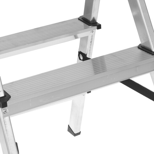 Противоскользящие накладки способствуют лучшему сцеплению обуви со ступенькой и гарантируют безопасность пользователя. Рабочая высота SARAYLI 3103 – 233 см. В разложенном виде высота от верхней ступеньки до опоры составляет 63 см. Глубина в сложенном состоянии – 16 см.