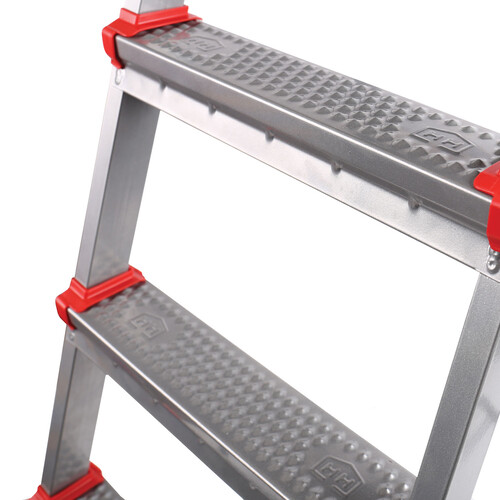 Стремянка односекционная HAUSHALT HНСУ4 сделана из стали. Антикоррозийное покрытие защищает металл от разрушения при эксплуатации во влажной среде. Противоскользящие ступени снижают риск падений. Модель имеет площадку, куда можно поставить ведро с материалами или положить рабочие принадлежности. Для удобства размещения инструментов в конструкции предусмотрен лоток. В сложенном состоянии длина лестницы 148.5 см, а глубина 10.5 см. В таком положении ее будет удобно хранить в подсобке или перевозить в машине.