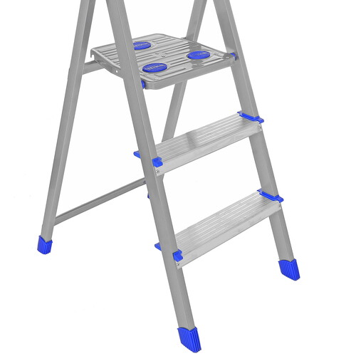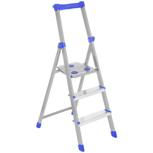 Стремянка простая Ника СКА3 − комбинированная стремянка с тремя ступенями и устойчивой платформой, которая обладает высокой устойчивостью и надежностью. Модель поддерживает нагрузку 150 кг. Она изготовлена из стали в сочетании с алюминием, поэтому является долговечным приспособлением. Вес стремянки соответствует 4.6 кг, что позволяет, легко сложив ее, переносить с одного места на другое.