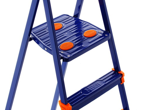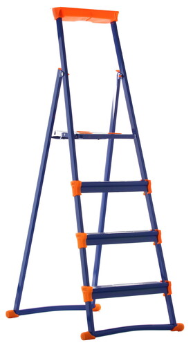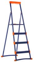 Стремянка простая Ника СМ4+ изготовлена из стали и относится к особо прочным моделям. При ее производстве были задействованы профильные трубы 30x15 миллиметров, поэтому максимальная нагрузка может достигать показателя в 150 килограммов. Модель выполнена в ярко-синей расцветке и дополнена оранжевыми противоскользящими накладками. Последнее обстоятельство делает представленную стремянку безопасной в применении.