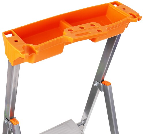 Ника СМ4 выполнена из стали и весит 5.5 килограмма. При этом стремянка компактно складывается, что позволяет аккуратно прибрать ее либо разместить в автомобиле при необходимости. Ступени стремянки оснащены рельефными противоскользящими накладками, что делает ее использование безопасным. Механизм фиксации устройства в разложенном состоянии прочен и долговечен.