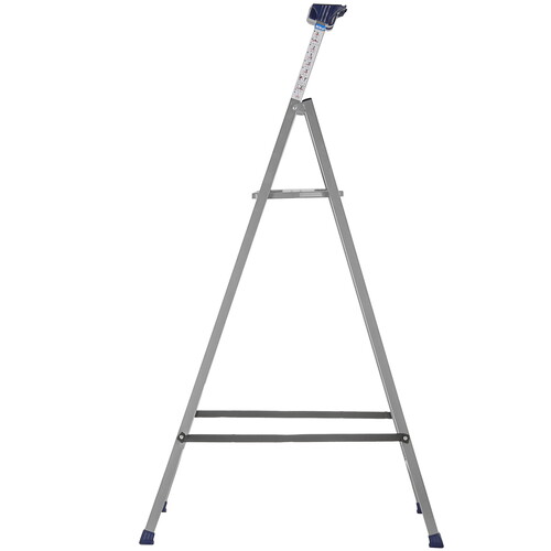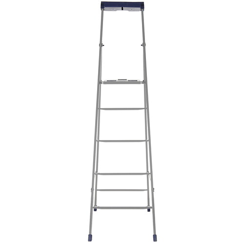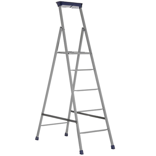 Стремянка односекционная Ника СП5 серебристого цвета имеет рабочую высоту 276.5 см. Она состоит из одной секции и пяти ступеней. Модель подойдет для ремонта, монтажных и малярных работ на высоте. Конструкция может выдержать нагрузку до 100 кг. Это позволяет использовать модель людям весом до 70-90 кг.