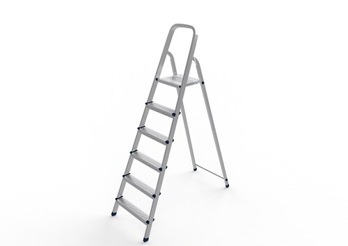 Стремянка односекционная Sarayli JACKSON выполнена из стали, устойчивой к регулярному воздействию веса до 125 кг. Конструкцией предусмотрено 6 ступеней.