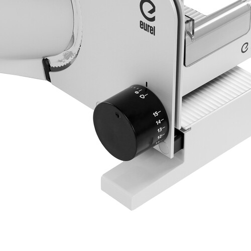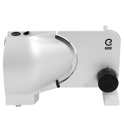 Ломтерезка Eurel RS74 V2 серебристого цвета обеспечит нарезку продуктов на ломтики толщиной до 15 мм. Модель обладает мощностью 100 Вт и способна непрерывно проработать до 5 минут без риска перегрева двигателя. Скользящие металлические салазки перемещаются вместе с продуктом для аккуратной и точной нарезки. Острый нож диаметром 170 мм с волнообразной заточкой выполнен из нержавеющей стали. Устойчивость 3-скоростной ломтерезки Eurel RS74 V2 на любой поверхности обеспечивает противоскользящее основание.