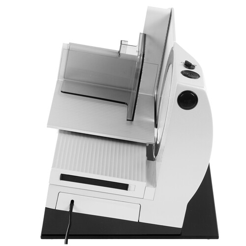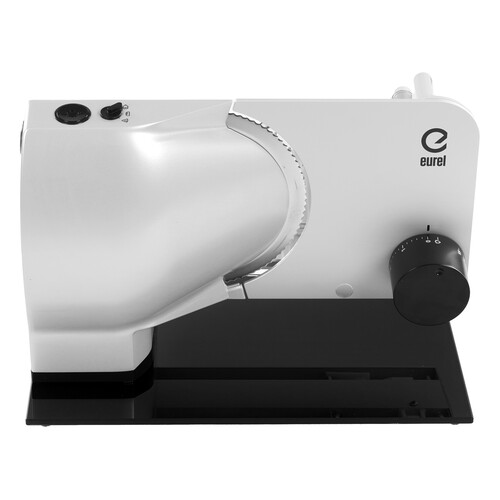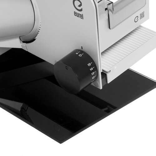 Ломтерезка Eurel RS94 V2 серебристого цвета обеспечит нарезку продуктов на ломтики толщиной до 15 мм. Модель обладает мощностью 100 Вт и способна непрерывно проработать до 5 минут без риска перегрева двигателя. Предусмотрена поддержка наклона рабочего стола, чтобы снизить нагрузку на руку. Скользящие металлические салазки перемещаются вместе с продуктом для аккуратной и точной нарезки. Острый нож диаметром 170 мм с волнообразной заточкой выполнен из нержавеющей стали. Устойчивость 3-скоростной ломтерезки Eurel RS94 V2 на любой поверхности обеспечивает противоскользящее основание.