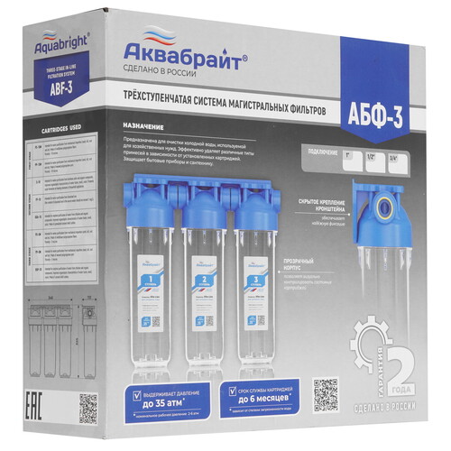 1/2", скорость фильтрации - 10 л/мин, для холодной воды, ступеней очистки - 3