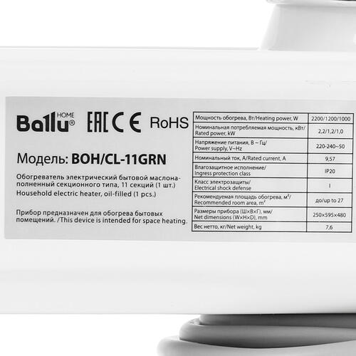 Масляный обогреватель Ballu BOH/CL-11GRN белый [5336229]