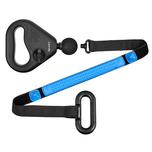 Перкуссионный массажер с массажной лентой. Проведение интенсивного ударного массажа снижает мышечные боли, снимает напряжение и усталость мышц, способствует ускоренному восстановлению организма после физических нагрузок. Массажная лента с аппликаторами создает вибрацию, которая проникает в глубокие слои мышечной ткани и позволяет проработать наиболее чувствительные зоны тела. Универсальная круглая насадка воздействует на тело ударно-волновыми движениями различной частоты, что сравнимо с ручными техниками массажа - разминаниями, постукиваниями, поглаживаниями и вибрацией.