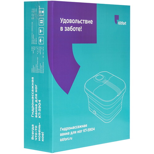 Гидромассажная ванна КТ-5904 поможет снять усталость, уменьшить отёки, улучшить циркуляцию крови и расслабить мышцы стоп с помощью гидро-массажа и пузырькового массажа. Температура воды настраивается: вы можете установить нагрев воды до 42,44 или 46 °C.Массажные ролики устанавливаются в пазы на корпусе устройства и помогают снять усталость и напряжение стоп, расслабить мышцы и улучшить кровоток. Также, массажные ролики позволяют принять стопе удобное положение. Ролики не вращаются автоматически.Гидромассажная ванна для ног оснащена таймером на 20 и 30 минут. По прошествии этого времени устройство автоматически выключится. Если таймер не будет включён, и вы не выключите устройство вручную, автоотключение произойдёт через 60 минут.В задней части ванны расположена кнопка включения. Так же в комплекте с прибором идёт пульт. После выбора температуры воды с помощью пульта ДУ - начнётся нагрев, индикатор температуры будет гореть в соответствии с температурой в реальном времени.После использования ванну можно сложить до почти плоского состояния и убрать в любое удобное для вас место. Аппарат не займёт много пространства, что делает его хранение практичным.