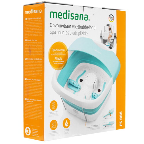 Гидромассажная ванночка для ног FS 886. Складная ванна для ног для удобного и компактного хранения Расслабляющий пузырьковый и вибрационный массаж Быстрый нагрев воды до 45°C. Интенсивный массаж рефлекторных зон С предохранительными скобами, которые предотвращают складывание во время использования Prevent 3 сменных насадки для педикюра (для удаления мозолей, щеточка, массажная насадка) Подходит для обуви до 45 размера
