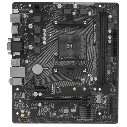 Материнская плата ASRock A520M-HVS станет отличным выбором для поклонников процессоров AMD. Модель, оснащенная сокетом AM4, подходит для сборки компактного универсального компьютера. Плата поддерживает частоту оперативной памяти до 4733 МГц. Скоростной твердотельный накопитель можно подключить к разъему M.2. Форм-фактор платы – Micro-ATX.