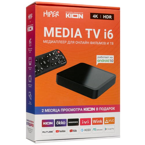 Медиаплеер HIPER MEDIA TV i6 предусматривает просмотр мультимедийного контента в разрешении до 6K и организацию подключения телевизора без встроенного Smart TV к Интернету. Устройство синхронизируется через видеовыход HDMI. Для соединения с сетью Интернет реализованы интерфейс Ethernet и модуль Wi-Fi.