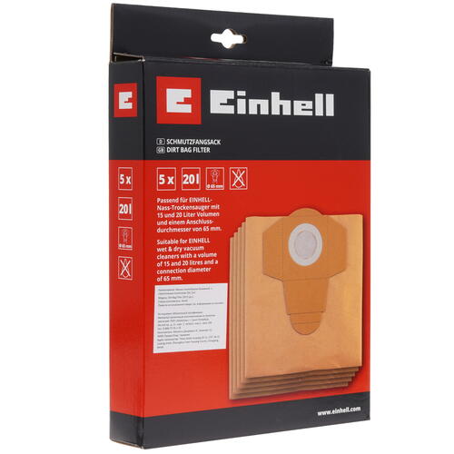 Мешок-пылесборник Einhell 2351152 совместим с широким модельным рядом строительных пылесосов Einhell, которые отличаются емкостью 15 и 20 литров. Пылесборники изготовлены из плотной бумаги и предназначены для сбора сухого строительного мусора. Материал устойчив к разрыву и воздействию острых предметов. Высокая сила всасывания стабильно поддерживается при любом заполнении пылесборника. В комплекте Einhell 2351152 поставляются 5 сменных пылесборников с картонными фланцами.