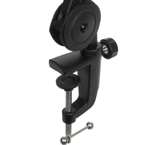 Микрофонная стойка Fifine BM63 прочно удерживает микрофон и позволяет настраивать его положение. Конструкция-пантограф предусматривает крепление к столу при помощи струбцины с регулировкой необходимой толщины. В верхней части есть крепление 5/8 дюйма для фиксации микрофона. Регулировка высоты стойки осуществляется вручную и может достигать 700 мм. Изготовленная из металла с защитным окрашенным покрытием, Fifine BM63 отличается стойкостью к механическим воздействиям и внешним факторам. Изделие способно выдерживать нагрузку в пределах 2 кг.