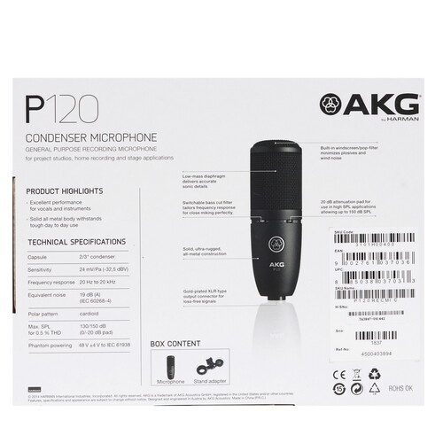 Микрофон AKG P120 конденсаторного типа предназначен для студийной записи. Это младшая модель линейки с кардиоидной диаграммой направленности, которая подойдет для тех, кто только начинает осваивать искусство звукорежиссуры или занимается записью дома. Присутствие фильтров высоких и низких частот значительно расширяет сферу применения этого микрофона. Он подходит для записи вокала и инструмента, обеспечивает хорошее качество.