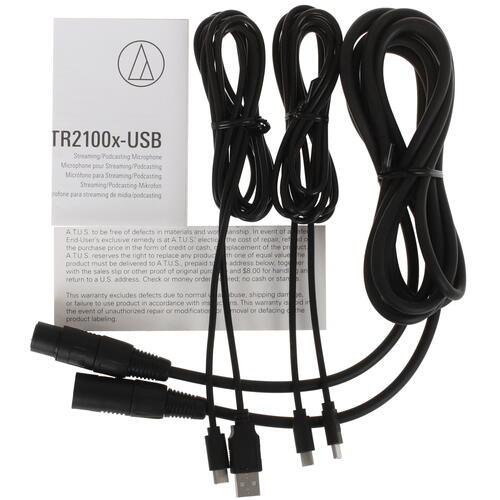 Микрофон Audio-technica ATR2100x-USB оборудован интерфейсами USB-Type C, jack 3.5 мм и XLR. Подключение осуществляется проводным способом. Для управления имеются кнопка отключения и регулятор уровня громкости. В комплекте поставляются кабели XLR и USB, подставка и крепление на стойку.