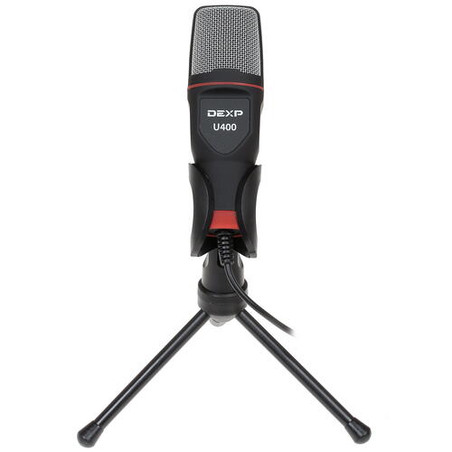 Для подключения модели DEXP U400 к ноутбуку или ПК вам достаточно воспользоваться предусмотренным в ней USB-кабелем. Этот микрофон обладает прочной подставкой, позволяющей комфортно расположить его на рабочем столе или другом удобном для вас месте.