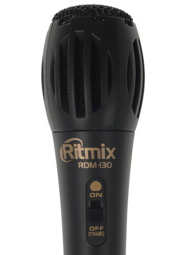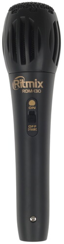 Микрофон Ritmix RDM-130 выполнен из пластика черного цвета и имеет традиционный дизайн. Модель имеет проводное подключение и предназначена для караоке. Динамический микрофон обладает кардиодной направленностью. Частотный диапазон модели 60–15000 Гц сочетается с ее чувствительностью в 54 дБ и сопротивлением 600 Ом. Кабель устройства длиной 2 метра оканчивается интерфейсом jack 6.3 мм. Микрофон имеет необходимость фантомного питания и кнопку отключения питания на корпусе. Ritmix RDM-130 весит всего 120 г.