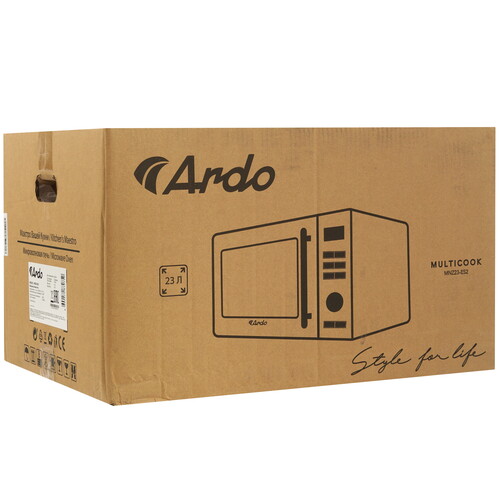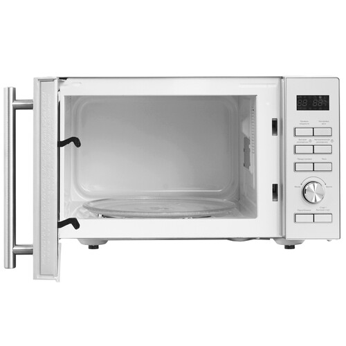 Микроволновая печь MNZ23-EFB2 имеет внутренний объем 23 л. Вращающееся стеклянное блюдо диаметром 27 см обеспечивает равномерный нагрев. На передней панели расположены электронные кнопки с обозначениями функций, дисплей с часами и поворотный регулятор. При помощи таймера с обратным отсчетом программируется время работы. Для визуального контроля степени готовности реализована подсветка камеры.