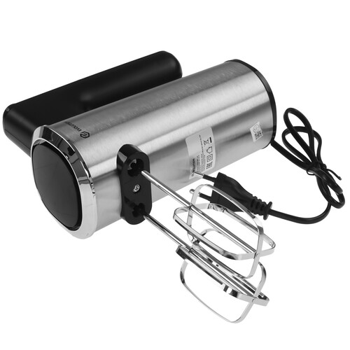 500 Вт, ручной, скоростей - 6, корпус - нержавеющая сталь, пластик, насадок - 4 шт, турборежим
