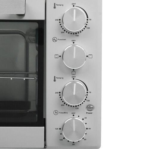 Мини-печь Kraft KFC-MO 381 HGR серого цвета получила камеру на 38 л. Этого объема хватит для размещения внутри целой курицы или другого объемного блюда. Духовка поддерживает нагрев от 70° до 250° C. В ней можно запекать, делать выпечку, поджаривать еду, а также доводить блюда до готовности при минимальной температуре. Модель поддерживает 3 режима работы: верхний, нижний и верхний-нижний нагрев.