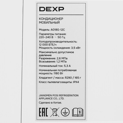 Кондиционер мобильный DEXP A018G-12C белый [9220203]
