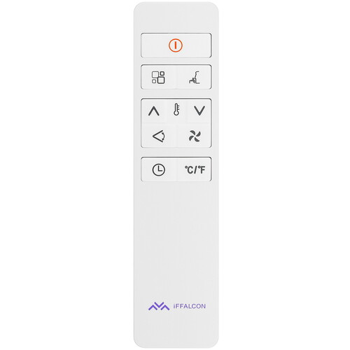 iFFALCON PSL 09 представлен в белом корпусе с колесами для перемещения и воздуховодом в комплекте. Цифровой дисплей отображает выбранные режимы и функции. Вы можете управлять настройками с помощью сенсорной панели на корпусе или пульта ДУ. Функция автоперезагрузки возвращает устройство к работе после отключения света.