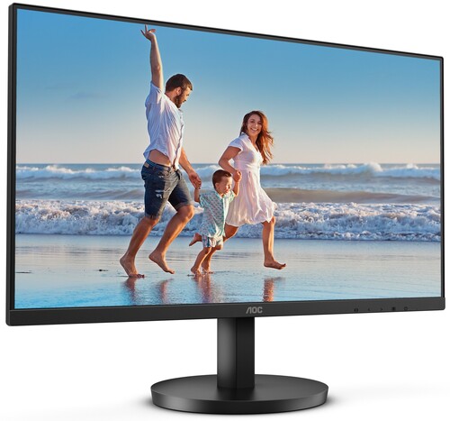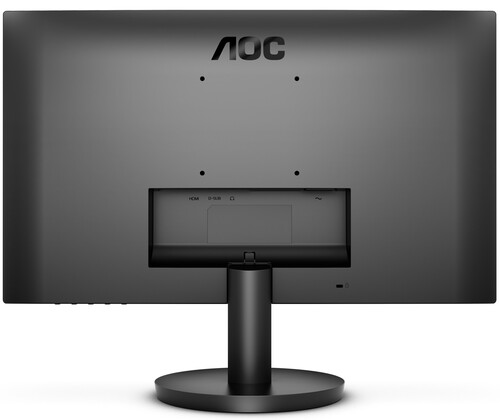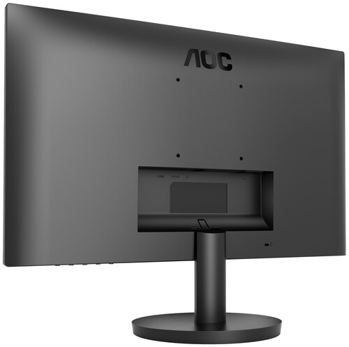 Монитор AOC 24B3HM с диагональю 23.8" выполнен в черном корпусе и устанавливается на подставку. Его конструкция с крепежными отверстиями, соответствующими стандарту VESA 100x100, дает возможность зафиксировать устройство на стене, что позволяет сэкономить пространство в комнате. На корпусе находятся разъемы HDMI и VGA (D-Sub), при помощи которых происходит подключение к компьютерному устройству и видеотехнике.