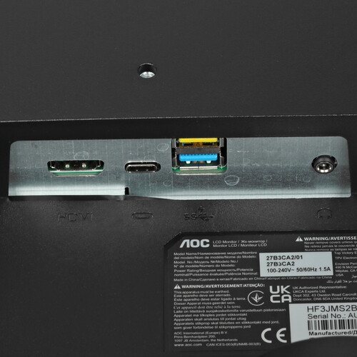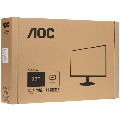 В мониторе AOC 27B3CA2 интегрирована акустическая система с двумя динамиками по 2 Вт. Они воспроизводят четкий звук. Для подключения к источнику сигнала предусмотрены интерфейсы HDMI и USB Type-C. При помощи портов USB можно подключать периферийные устройства. Настольная подставка поддерживает регулировку угла наклона.