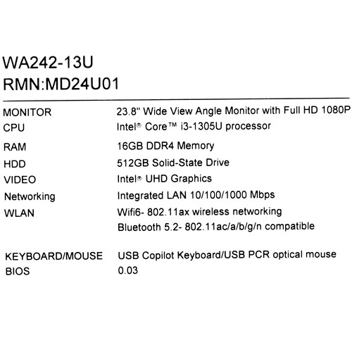 23.8" Моноблок AOPEN WA242-13U [5624229]