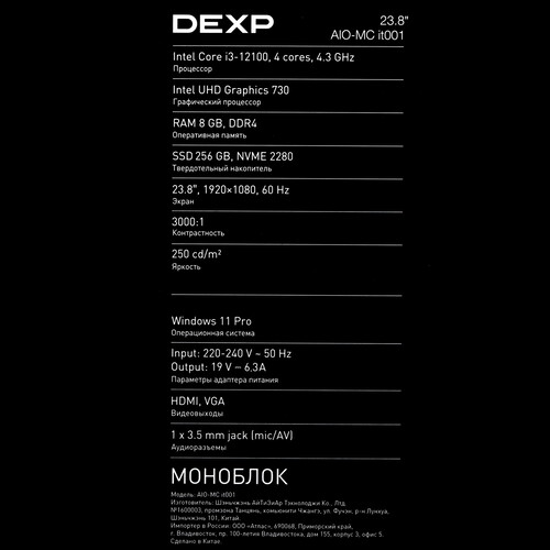 23.8" Моноблок DEXP AIO-MC it001 [9185683]