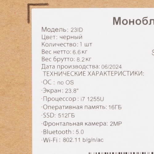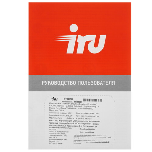 Моноблок iRU 23ID черного цвета обладает экраном диагональю 23.8\