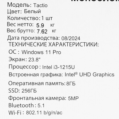 Серия моноблоков Tactio с экраном 23.8 дюйма, качественной цветопередачей и широким углом обзора создана на базе процессоров Intel Core. Предназначены для офисных задач и работы из дома. Встроенный графический адаптер Intel UHD Graphics ускоряет работу с графическими редакторами. Портретный режим и эргономичная подставка позволят организовать комфортное рабочее пространство. Для быстрого начала работы, в некоторых конфигурациях, предустановлена Windows Pro 11.