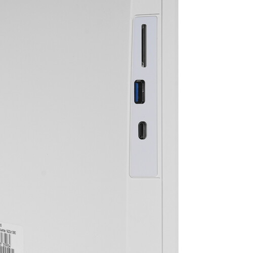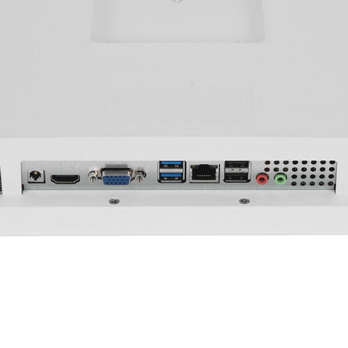 Экран модели iRU Tactio 23IH6W транслирует изображение в разрешении Full HD (1920x1080), а за яркость 250 Кд/м² и плотность пикселей 93 ppi под разными углами обзора отвечает технология IPS. Для работы с видео- и аудиотехникой блок имеет разъемы и порты, а для совершения звонков по видеосвязи предусмотрена выдвижная веб-камера на 2 Мп.