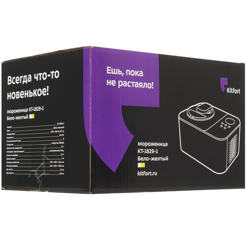 Мороженица Kitfort КТ-1829-1 желтого цвета обладает оригинальным дизайном и автоматическим компрессором мощностью 110 Вт. С помощью такого прибора можно приготовить в домашних условиях вкусное мороженое, сорбет и замороженный йогурт. Для этого в мороженице имеется алюминиевая чаша объемом 1.2 л, которая закрывается прозрачной крышкой. В крышке есть отверстие, чтобы удобно было добавлять нужные ингредиенты. Чаша легко извлекается из мороженицы за специальную ручку.