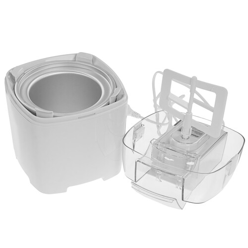 Мороженица IC 20 оборудована резиновыми ножками, чтобы прибор не скользил по поверхности стола. Управление режимами происходит с помощью поворотной ручки на корпусе. После достижения массой нужной консистенции, вы сможете вынуть чашу и поставить в холодильник для дальнейшего охлаждения.