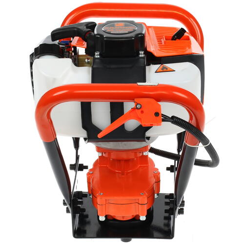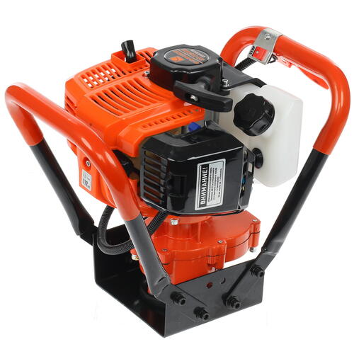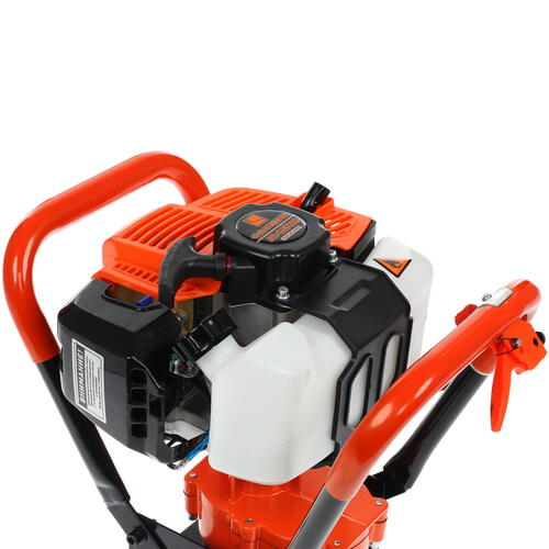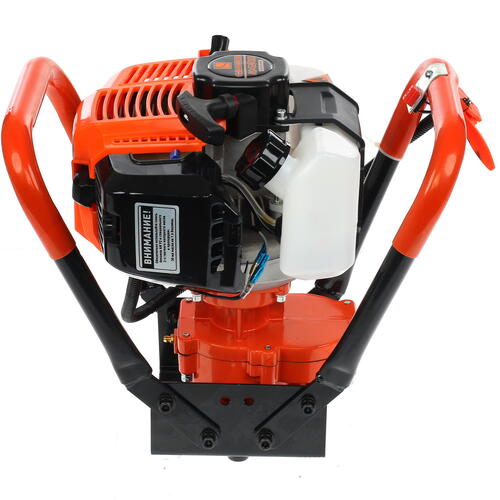 Предлагаемый мотобур подходит для почвы и льда. В данное оборудование ставится надежный двухтактный двигатель с мощностью 1400 Вт. Объем силового агрегата – 53 куб.см. В конструкции устройства предусмотрен топливный бак на 1.1 литра. В него заливается достаточно бензина, не надо часто пополнять запасы горючего при работе с оборудованием.