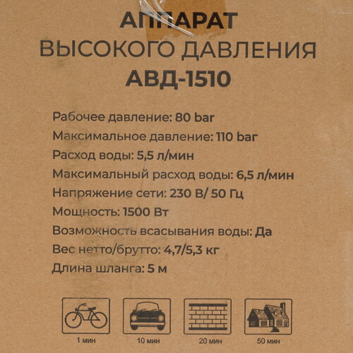 1500 Вт, 390 л/ч, 110 Бар, 5 м, тип забора воды - водопровод/из емкости, 4.7 кг