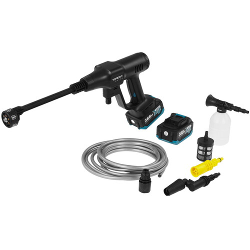 Бытовая минимойка Yofidra позволяет использовать воду из водопровода или отдельной емкости с температурой нагрева не более 70 °C. Двигатель дополнен защитой от перегрева и водяным охлаждением. Мощности устройства хватает для создания водяной струи с давлением до 208 Бар. Аккумуляторный инструмент не зависит от расположения розетки.