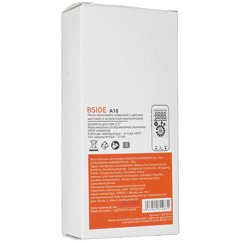 BSIDE A10 автоматически устанавливает диапазон измерений. Полноценная работа модели возможна при температурных колебаниях от 0 до +40 °C. Чехол обеспечивает бережное хранение и транспортировку. Предусмотренные в комплекте щупы повышают точность измерений.