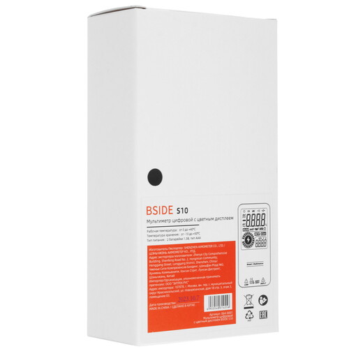 BSIDE S10 работает от батарейки типа ААА. Экономию заряда обеспечивает система автоматического отключения. Полноценная работа модели возможна при температурных колебаниях от 0 до +40 °C. Щупы повышают точность измерений. Защитный чехол способствует бережной транспортировке и хранению.