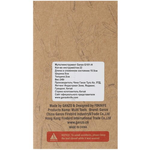 Устройство Ganzo G101-H заменит ножницы и ножи, открывалку, кусачки и отвертку, шило, плоскогубцы и многие другие инструменты. Компактные размеры и пружина для удержания одной рукой упростят работу в труднодоступных местах. Также мультитул дополнен фиксаторами для защиты от складывания.