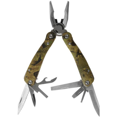 Мультитул Ganzo G2016-P – полезное приспособление для отдыха и решения мелких бытовых задач. Инструмент из нержавеющей стали дополнен пластиковыми ручками с красивой камуфляжной расцветкой. Внутри скрывается целый веер ножей, пилок, бит, отверток и других полезных насадок.