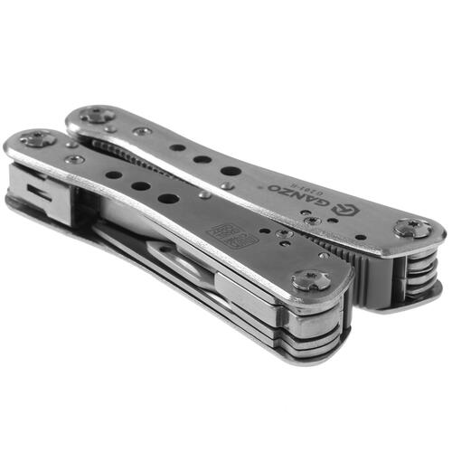 Мультитул Ganzo G201-H с набором насадок заметит 22 инструмента, помогая в выполнении мелких бытовых вопросов. Компактное приспособление можно носить в рюкзаке или кармане куртки, хранить в идущем в комплекте чехле вместе с блистером для бит. Конструкция из нержавеющей стали не боится быстрого износа и коррозии, а благодаря насечкам на ручках мультитул не выскальзывает из ладони.