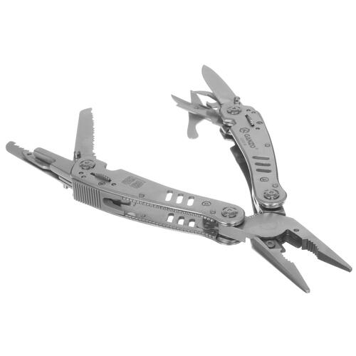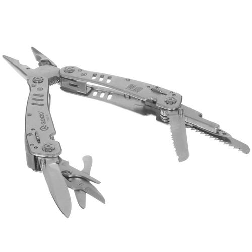 Устройство Ganzo G302-H из хромированной стали не боится грязи, влаги и ржавчины. Широкие ручки легко удерживаются, позволяют быстро достать нужную насадку. Мультитул оснащен набором бит и отверток, ножами и открывалками, кусачками, пилкой по дереву и другими полезными инструментами в миниатюре.
