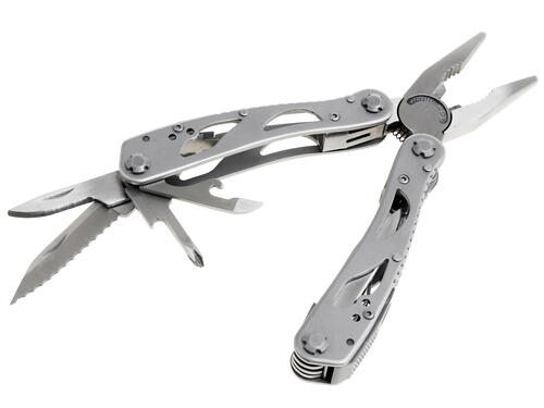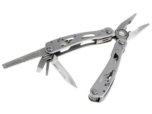 Мультитул ЗУБР "МАСТЕР" 47752 представляет собой полезный и практичный аксессуар, который выручит в любой ситуации и пригодится каждому мужчине. Он объединяет в себе 12 различных инструментов. В комплект входят нож, кусачки, плоскогубцы, открывалка, малая и средняя отвертки, а также пила по дереву. Инструменты произведены из качественного металла, что обеспечивает их прочность и длительный срок службы.