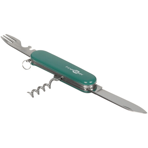 Швейцарский нож FinePower SK5005NH-3V объединяет в себе 5 инструментов. С его помощью можно открывать бутылки от лимонада и вина. В наборе есть вилка и ножевое лезвие. На корпусе предусмотрено кольцо для подвешивания ключей. Устройство удобно брать с собой в поездку, за город, на работу.