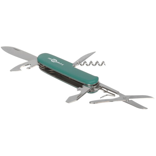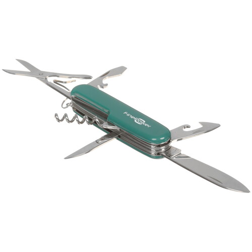 Швейцарский нож FinePower SK5006P-FB получил набор из девяти полезных инструментов. С помощью устройства можно открывать консервные банки, бутылки лимонада и вина, заворачивать/отворачивать винты. Шило поможет сделать отверстие в коже или другом мягком материале. Также в модели есть ножницы с пружинным механизмом и стриппер для снятия изоляции с проводов. Такой комплект поможет делать мелкий ремонт по дому. Он пригодится в походе, на работе.