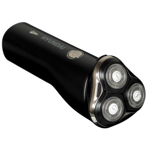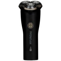 Электробритва Hyundai H-SH8090 представлена в черном компактном корпусе с золотистыми элементами. Она работает от Ni-Cd-аккумулятора, что делает устройство мобильным, позволяет мужчине следить за собой в поездках. От одного заряда бритва будет работать 45 минут, после чего потребуется 8-часовая зарядка.