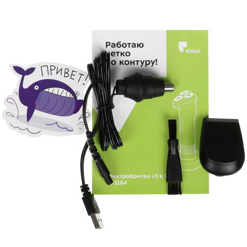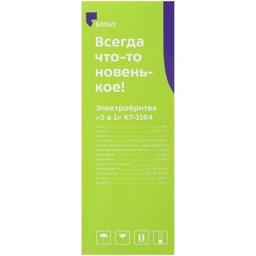 Автономная работа Kitfort КТ-3164 рассчитана на 45 мин. Подзарядка аккумулятора занимает до 8 ч. Очистка прибора производится с помощью щетки из комплекта. Защитная крышка служит для бережной транспортировки. Лезвия из нержавеющей стали не подвержены затуплению и образованию коррозийного налета.